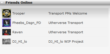 This displays users from your Friends list who are currently logged in. They are listed in the same order as in your Friends list. Next to their profile image is their current location in-world.