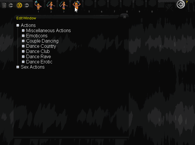 - Open the Quickbar editor again and redo all your actions from there. Do not add the dance moves that appear at the right side when you enter a Dance floor add to your Quickbar.
