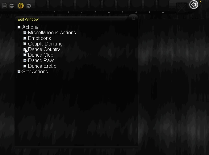 There are 10 rows of 10 slots which you can customize with your favourite dance moves, sex actions, emotions and much more. Scroll between rows using the arrow buttons (